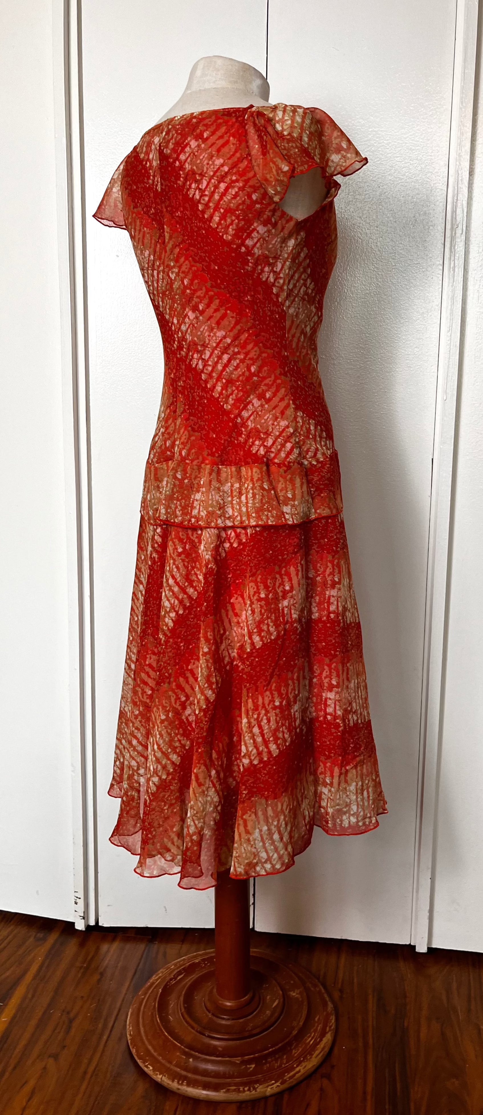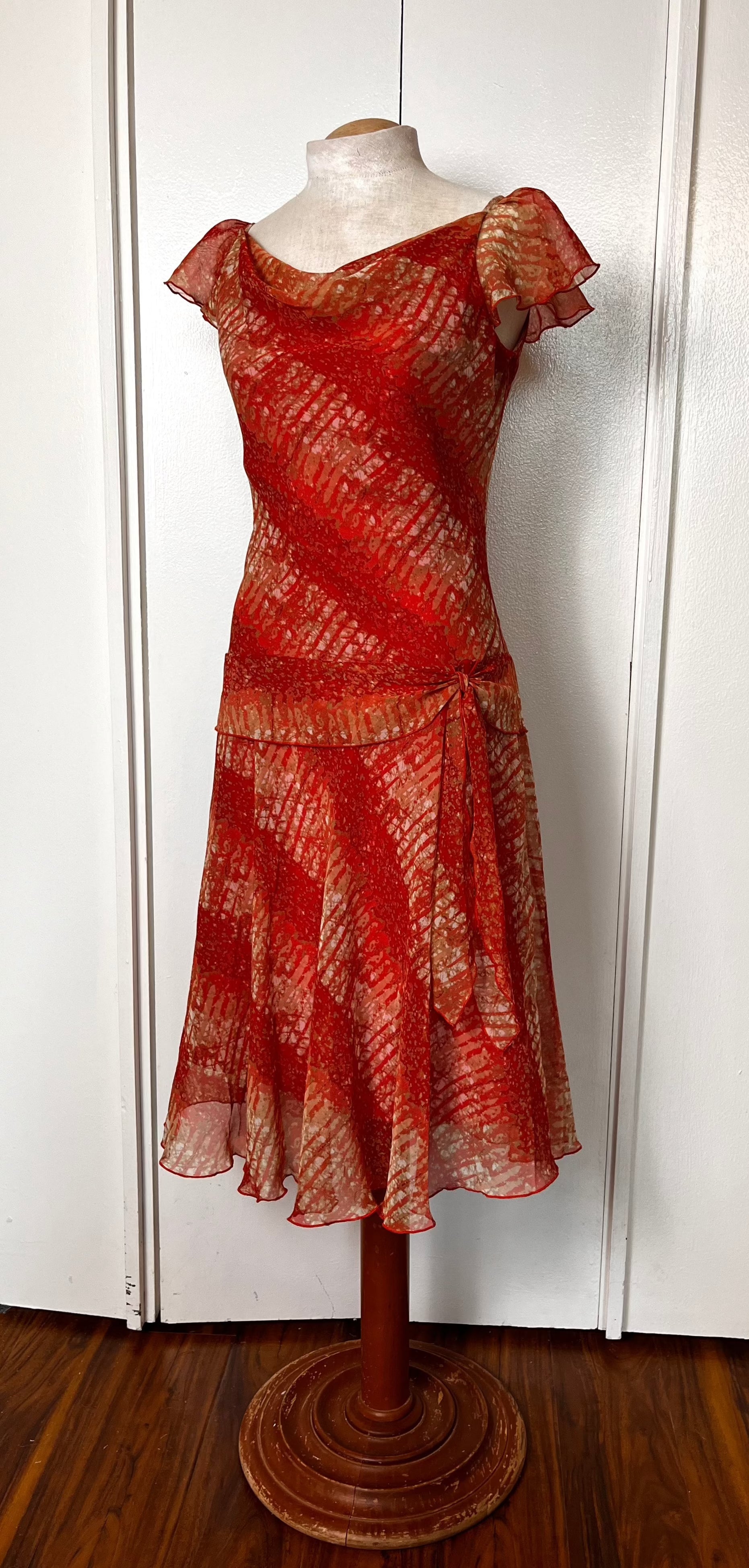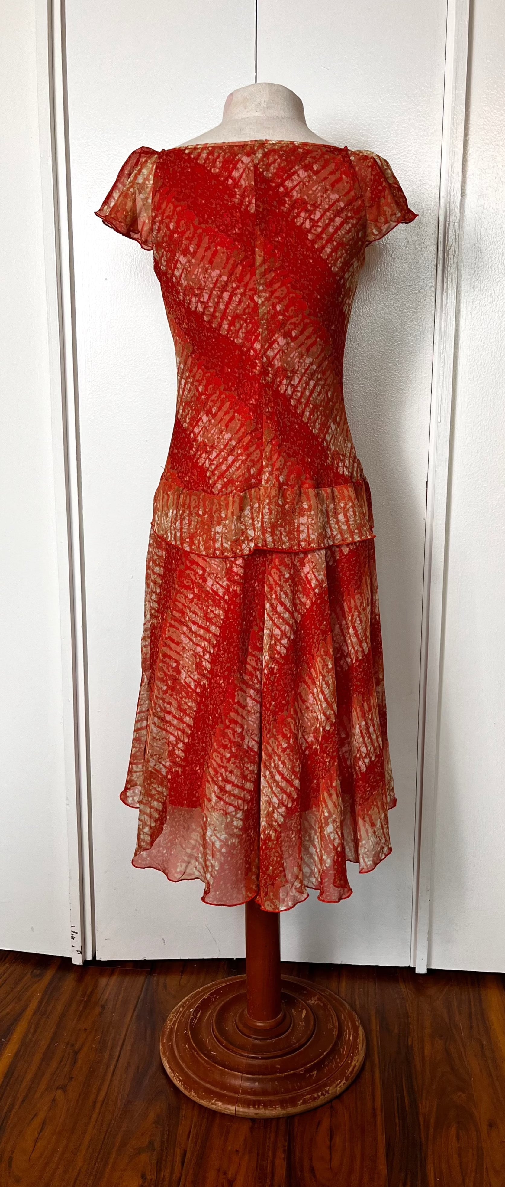 Vintage Y2K "Jonathan Martin" Red-Orange Drop-Waist Flutter Midi Dress