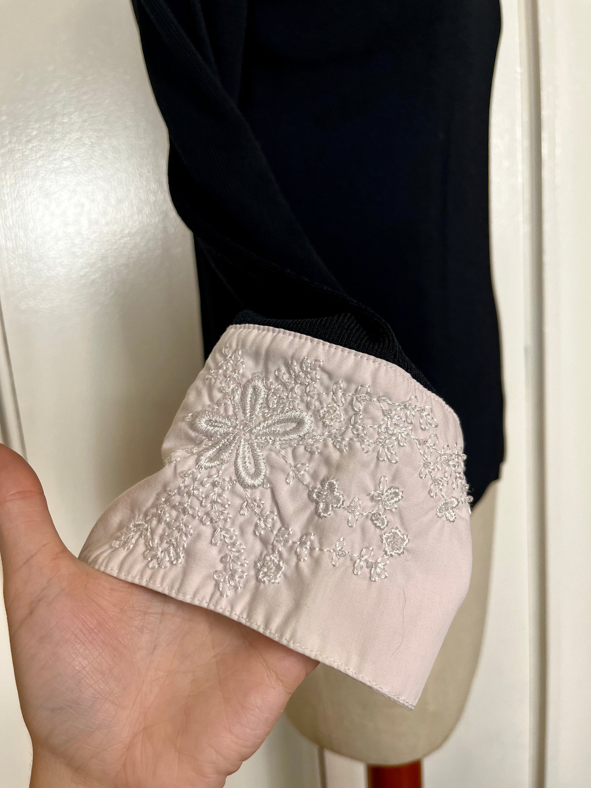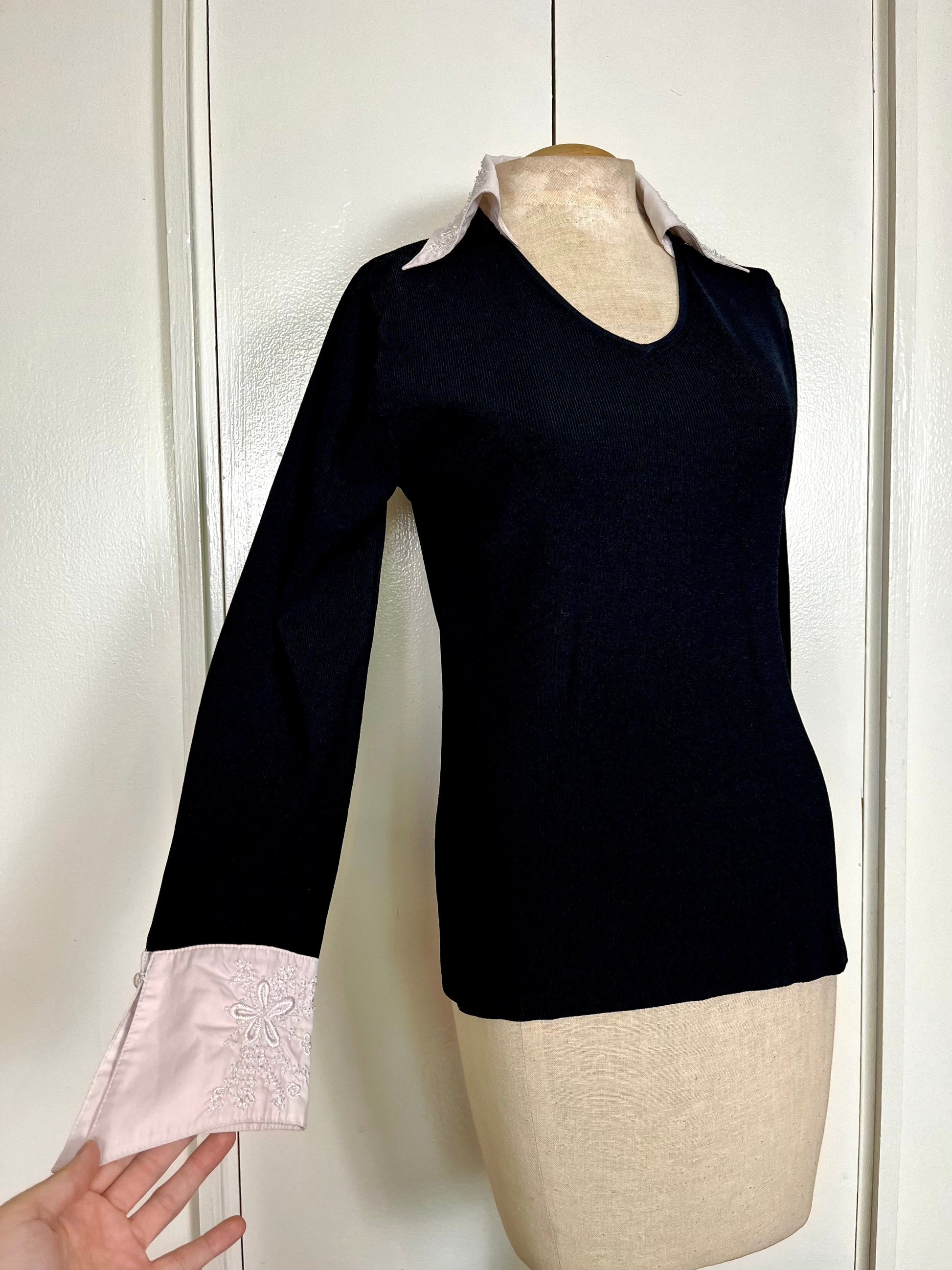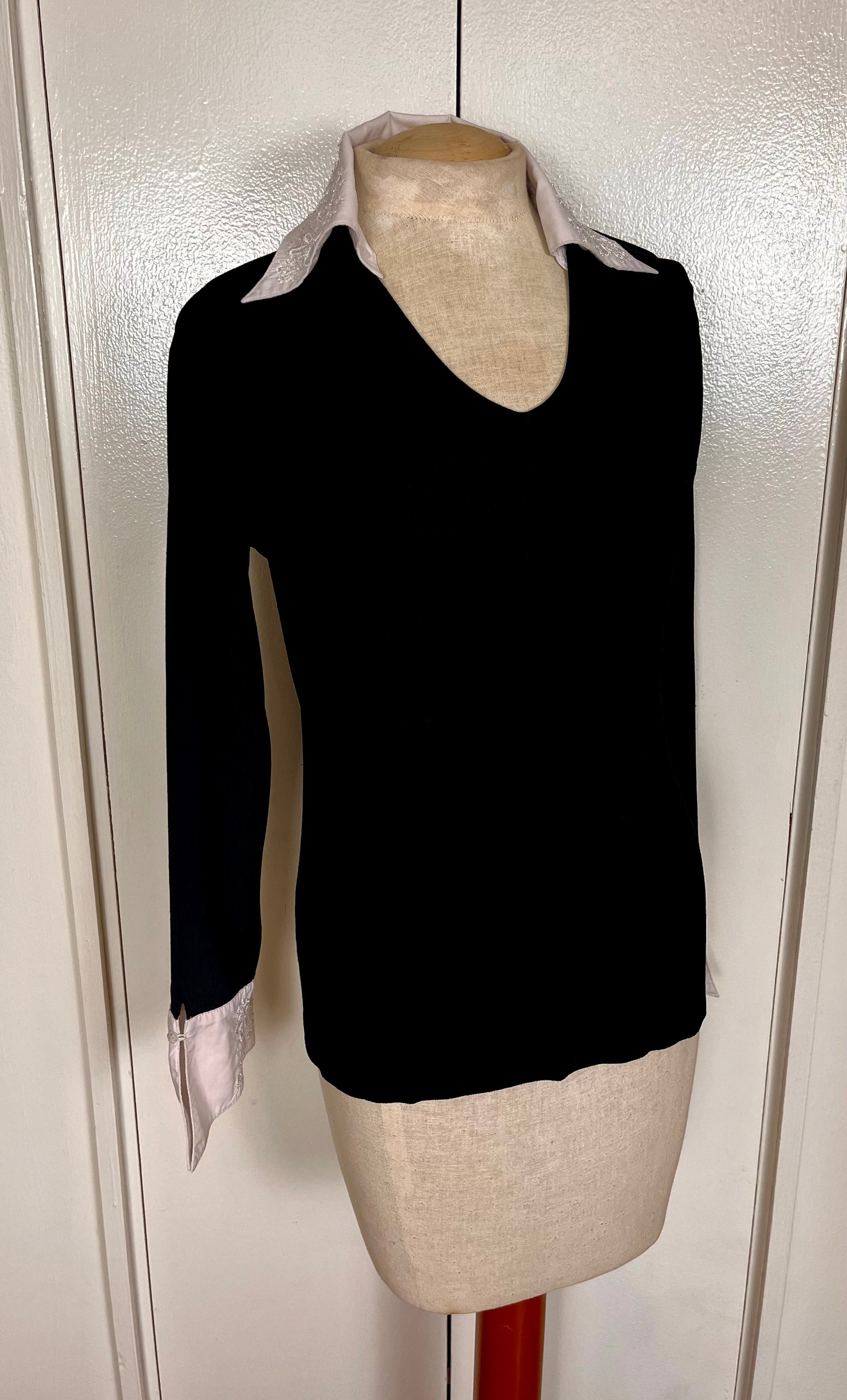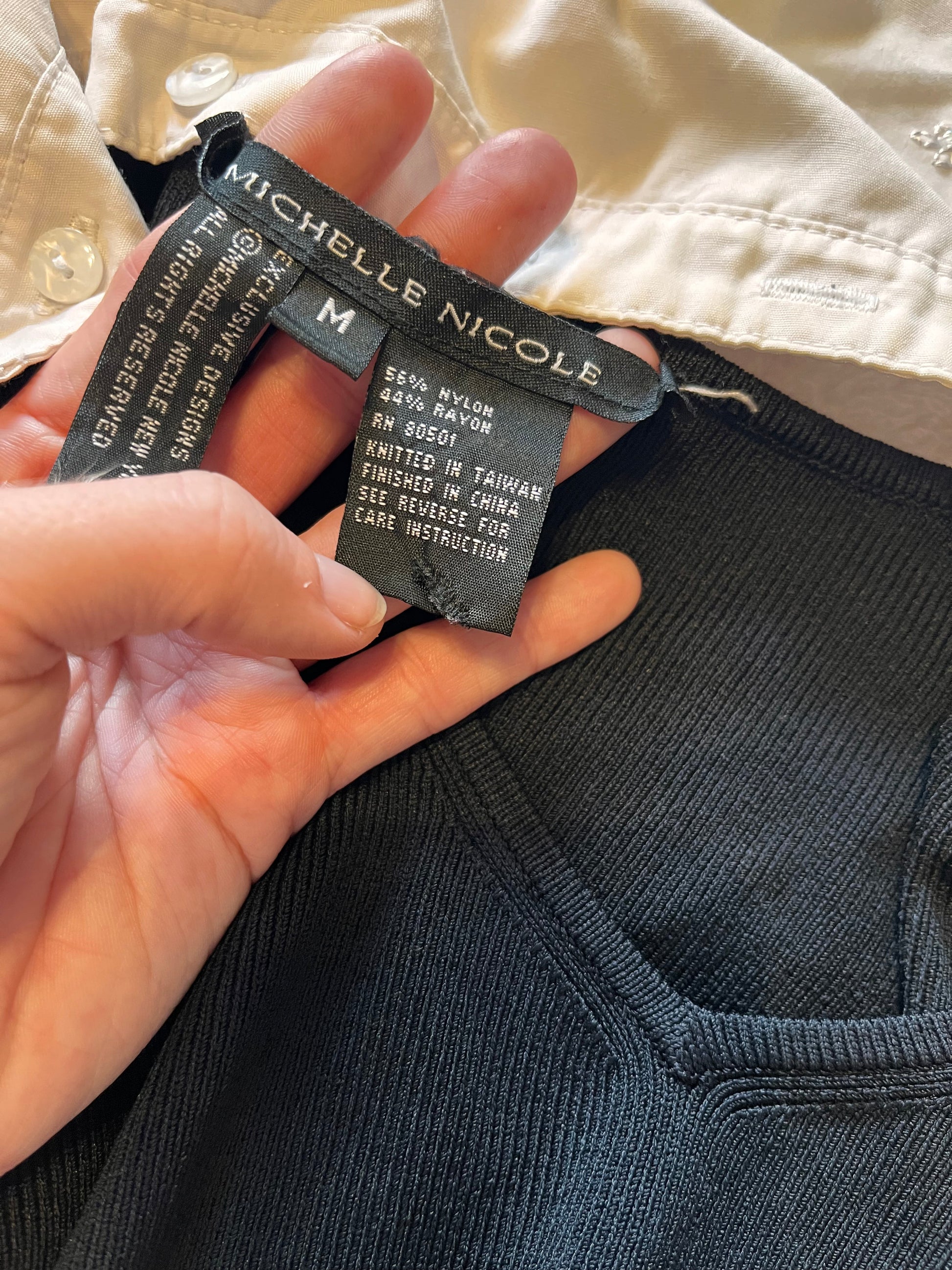 Vintage Y2K "Michelle Nicole" White & Black Collared Stretch-Knit Blouse