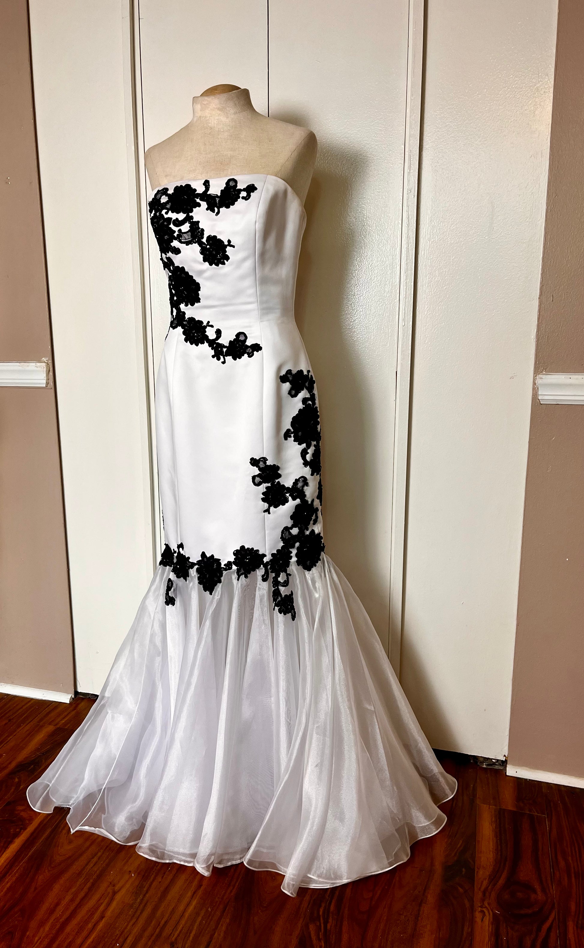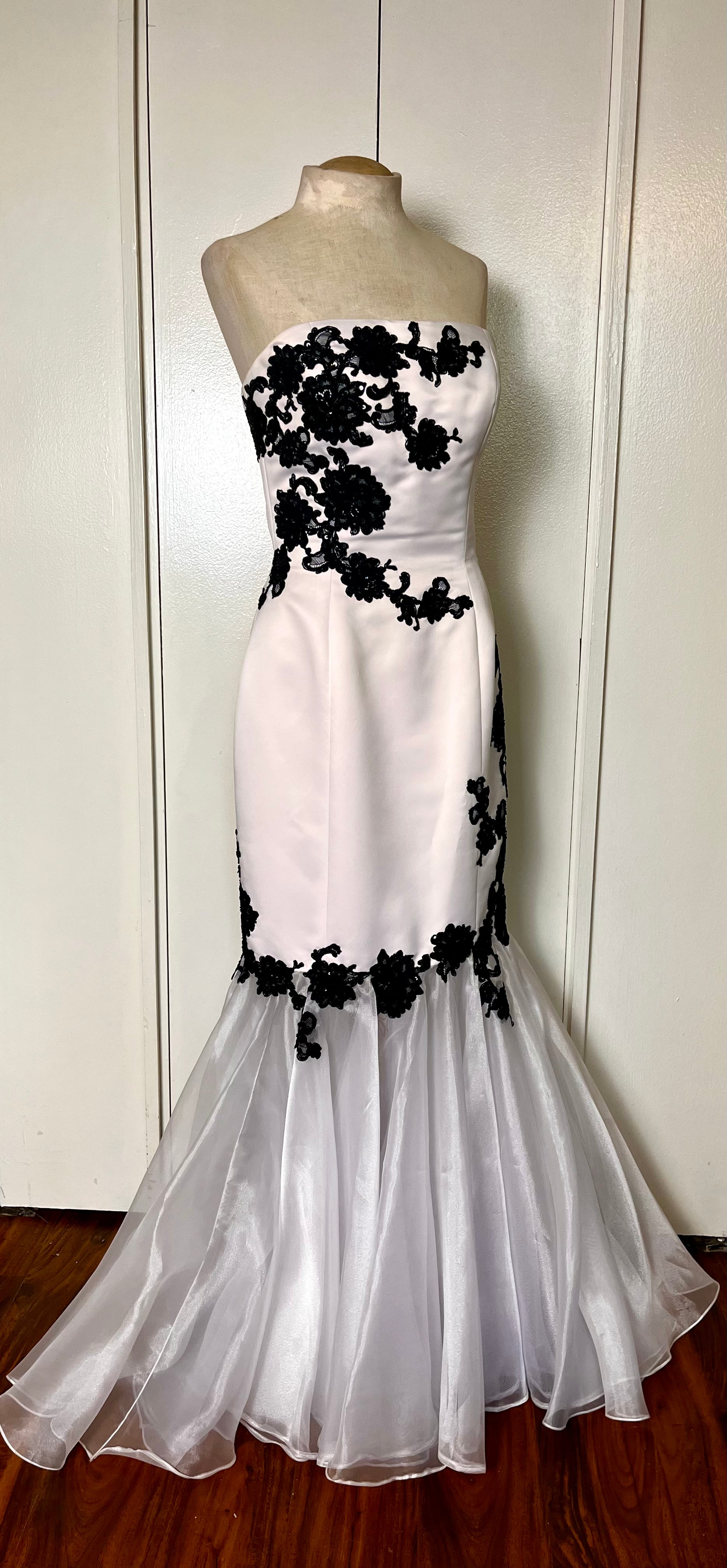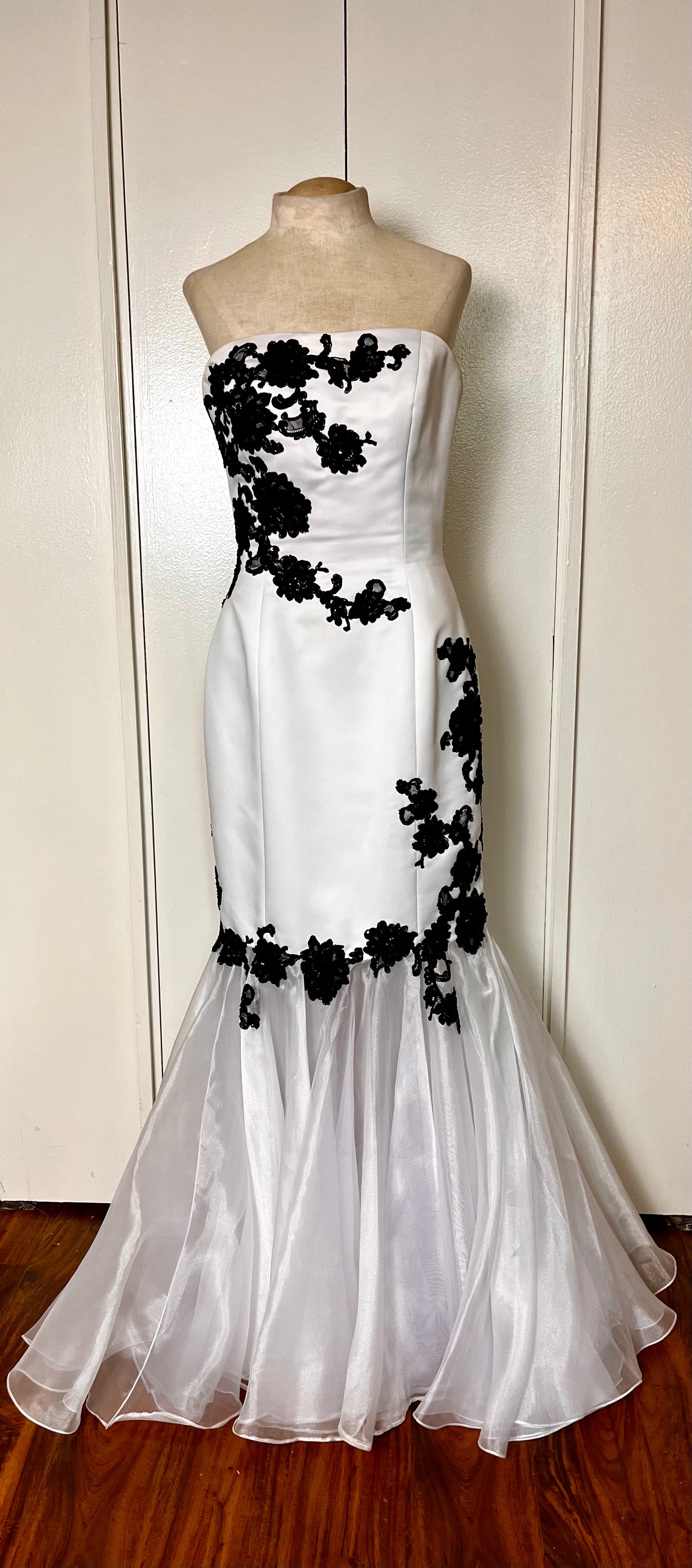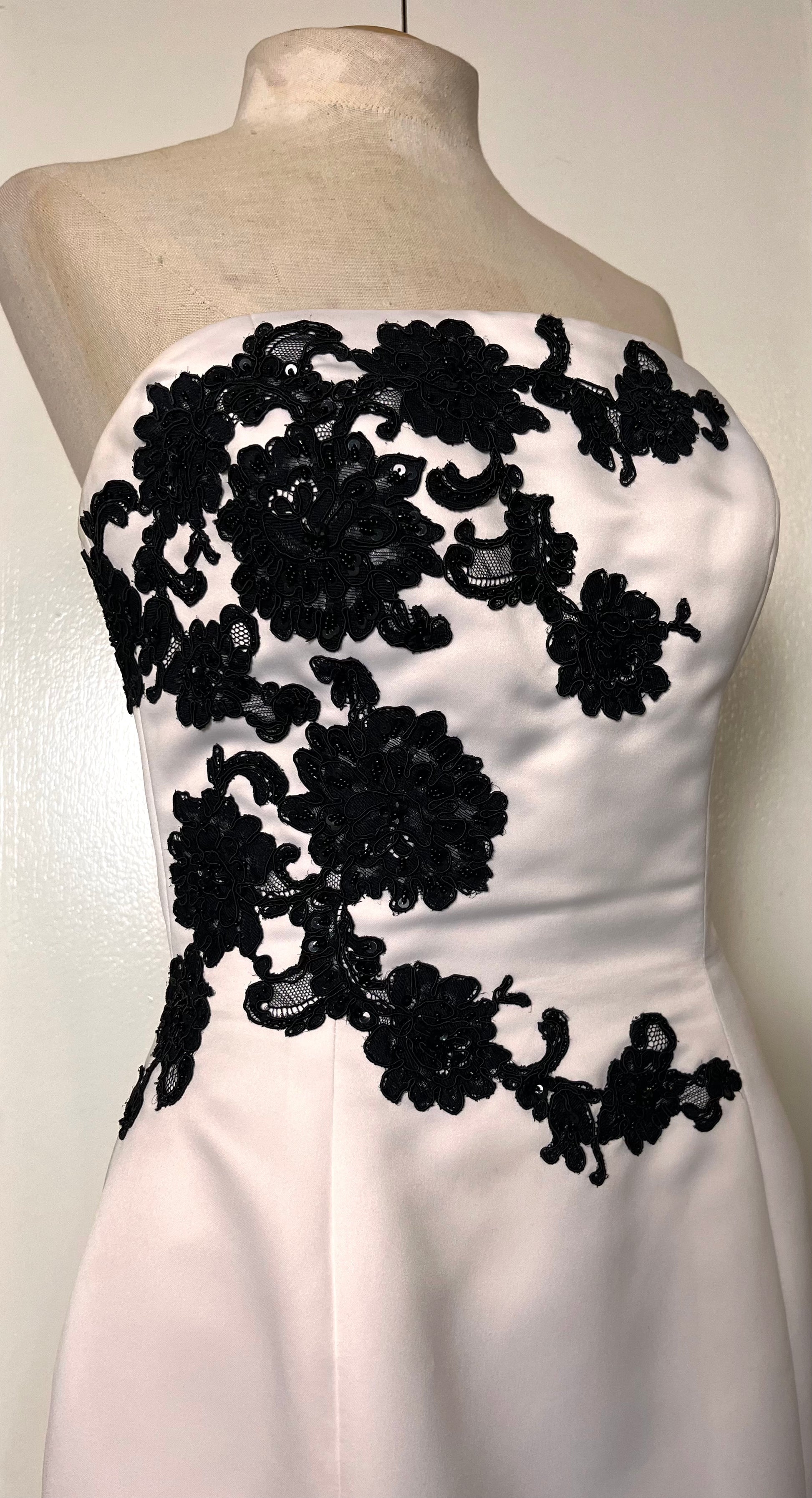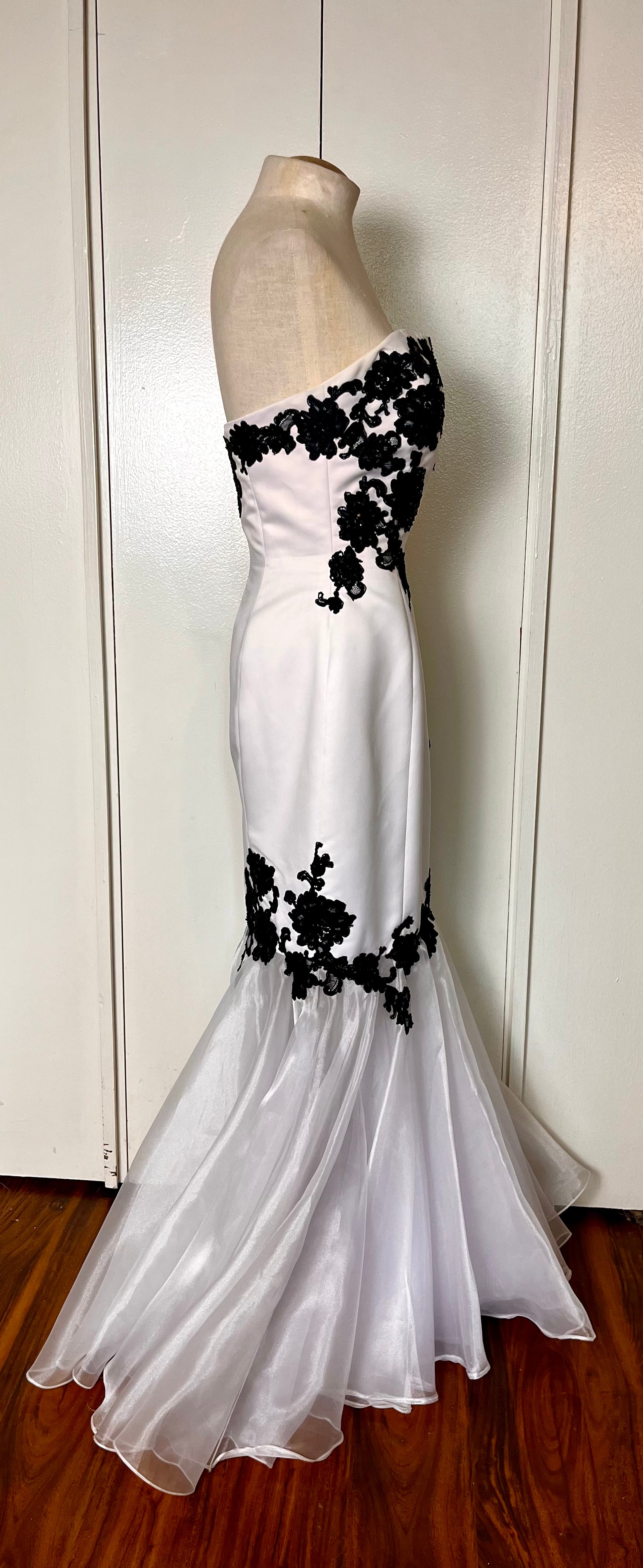 Vintage Y2K "Jovani" White w/ Black Lace Strapless Gown